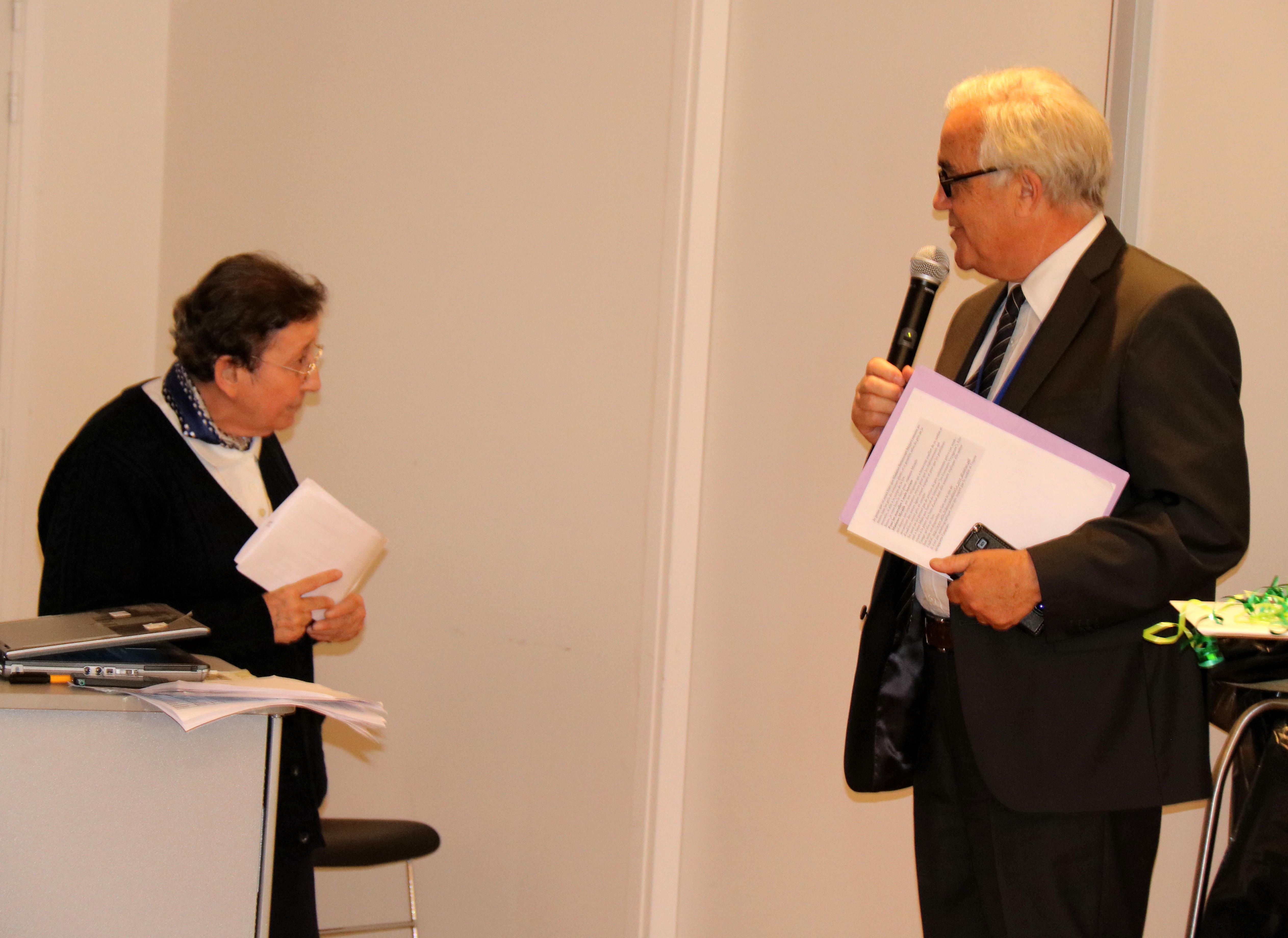 Quelques photos prises lors de cette cérémonie : l'intervention de deux lauréates du concours photos (N.Zbairi et J.Lescouet) , et le Professeur Frachet félicitant D.Mirailh avant de lui remettre son prix.
