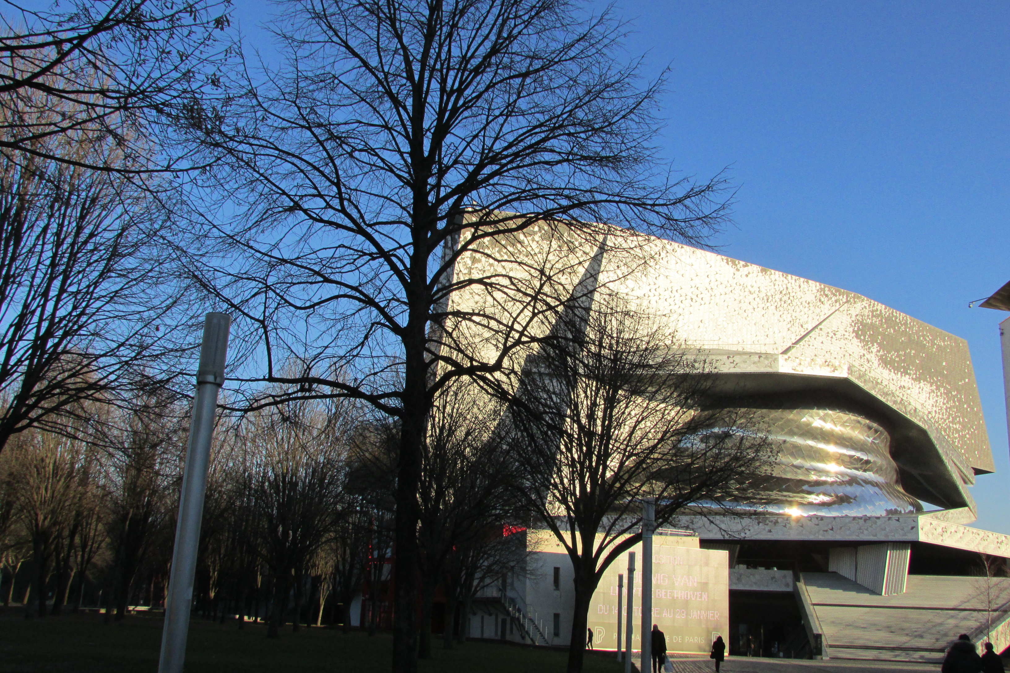 La Villette, 10h ... il fait très froid ce matin mais la Philharmonie est superbement éclairée par le soleil matinal !