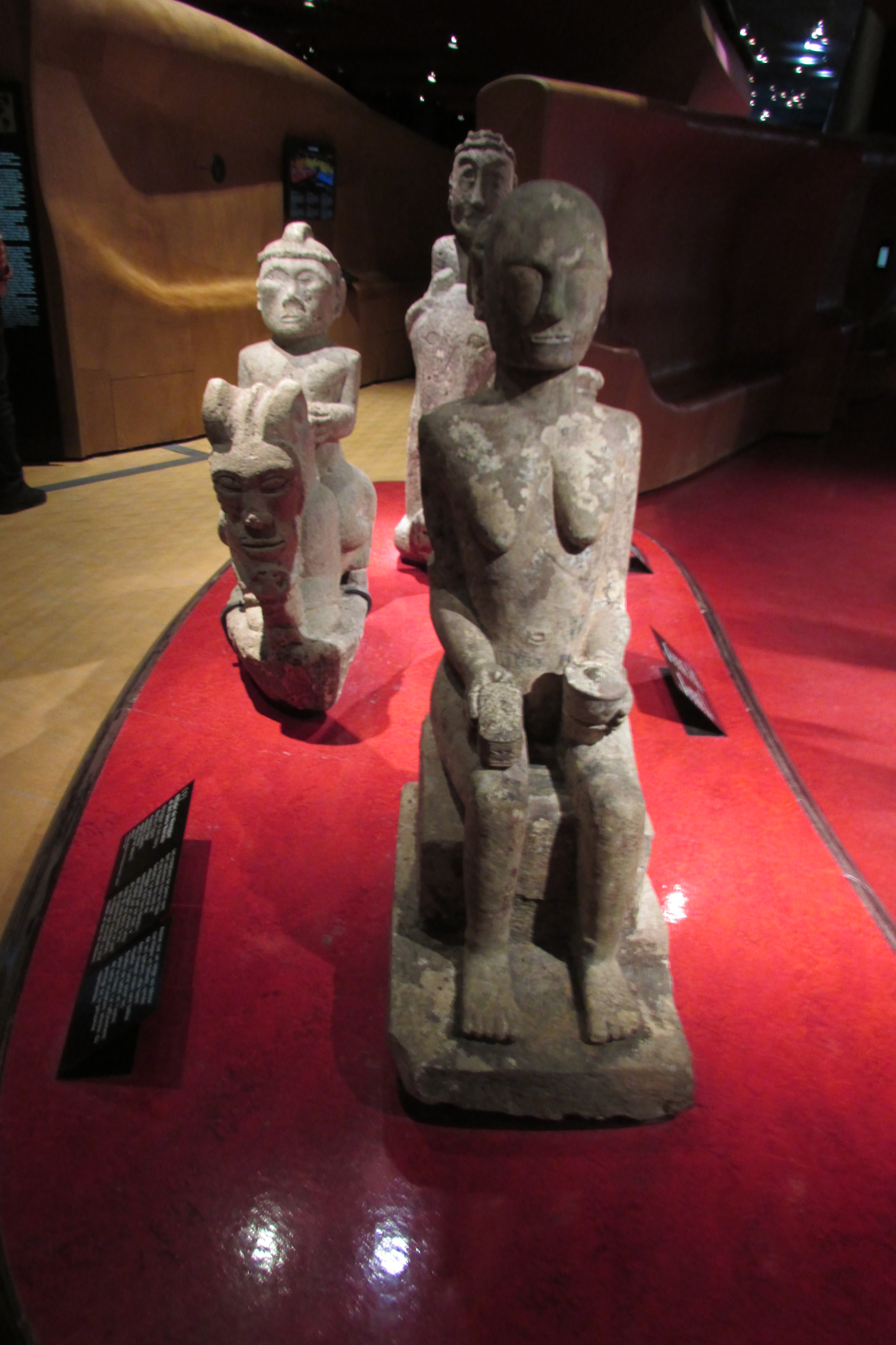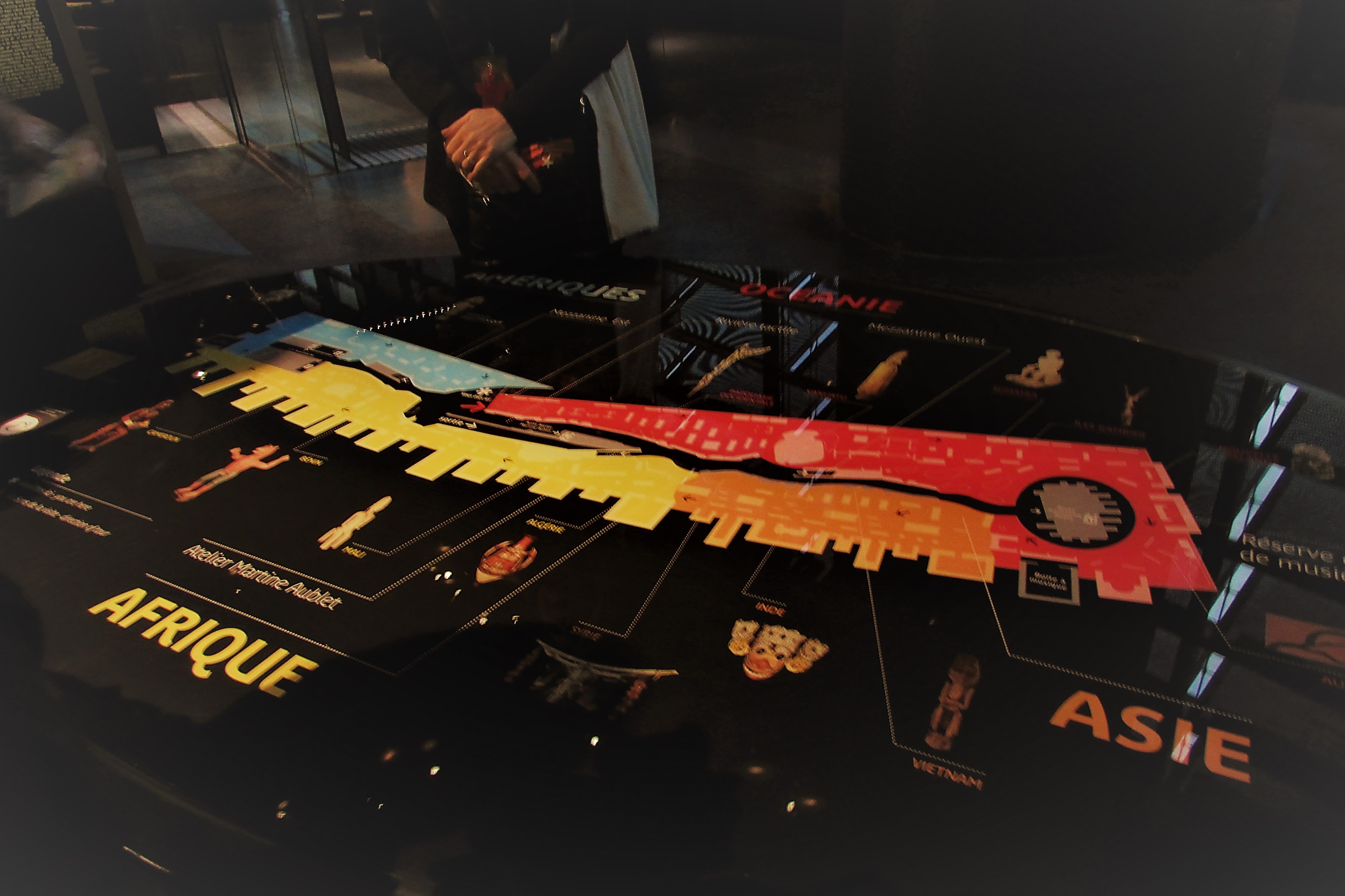 Au vu de la grandeur et de la multiplicité des oeuvres, nous faisons des escales rapides dans ses différentes grandes zones, 4 parcours dotés chacun d'une couleur différente qui nous permet un repérage rapide et indispensable : l'Asie, l'Afrique, l'Océanie, les Amériques. |
