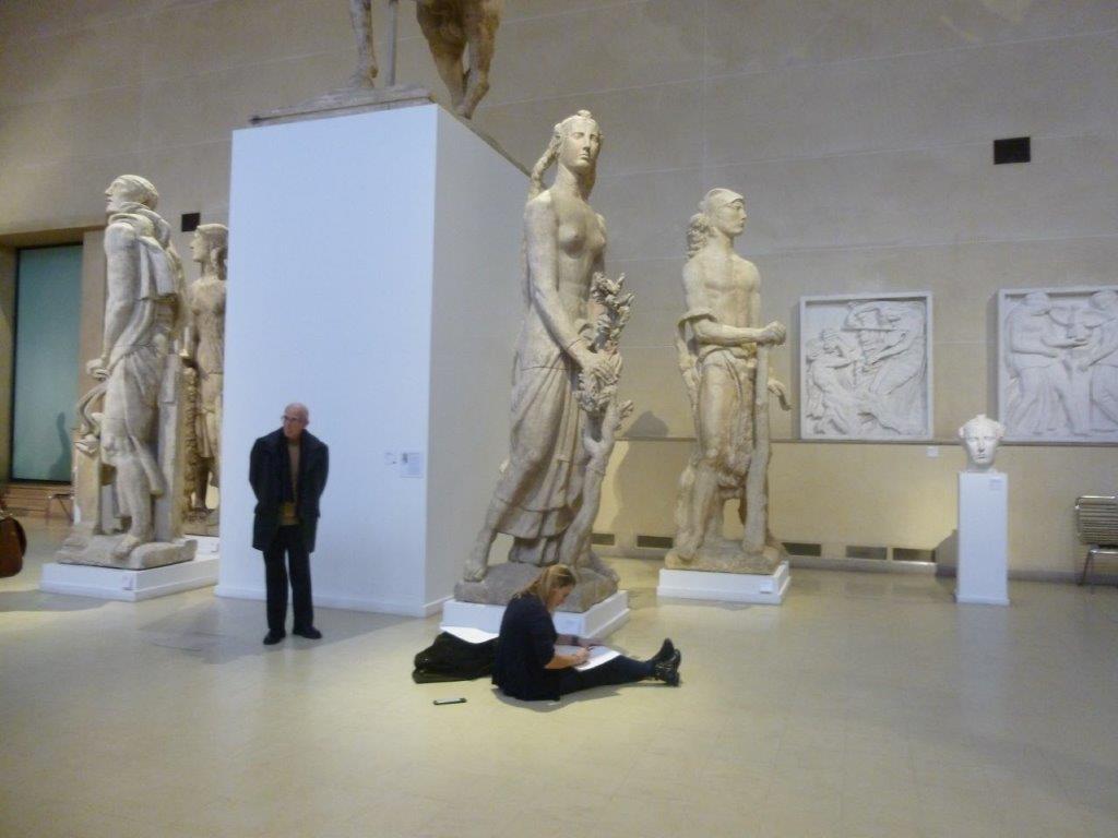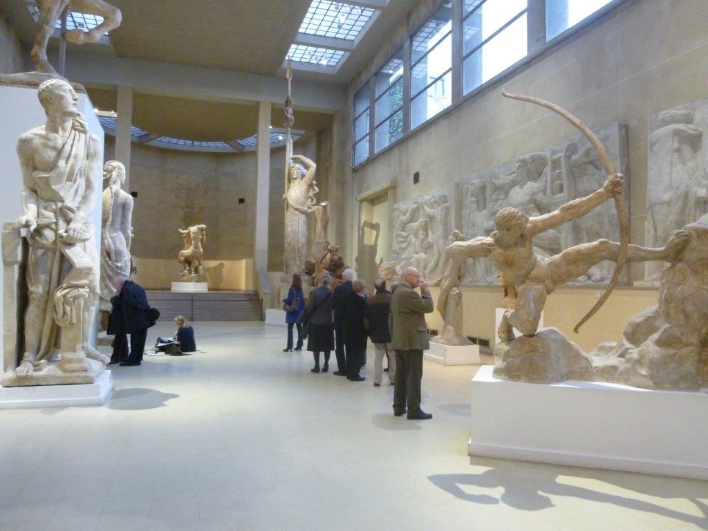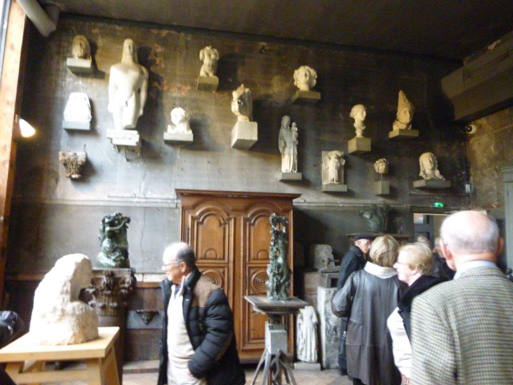 Nous commençons la visite par la verrière où Antoine Bourdelle a établi son atelier. Nous découvrons des plâtres (têtes) des marbres et des bronzes marquant ainsi son attachement à la plurialité des matériaux.