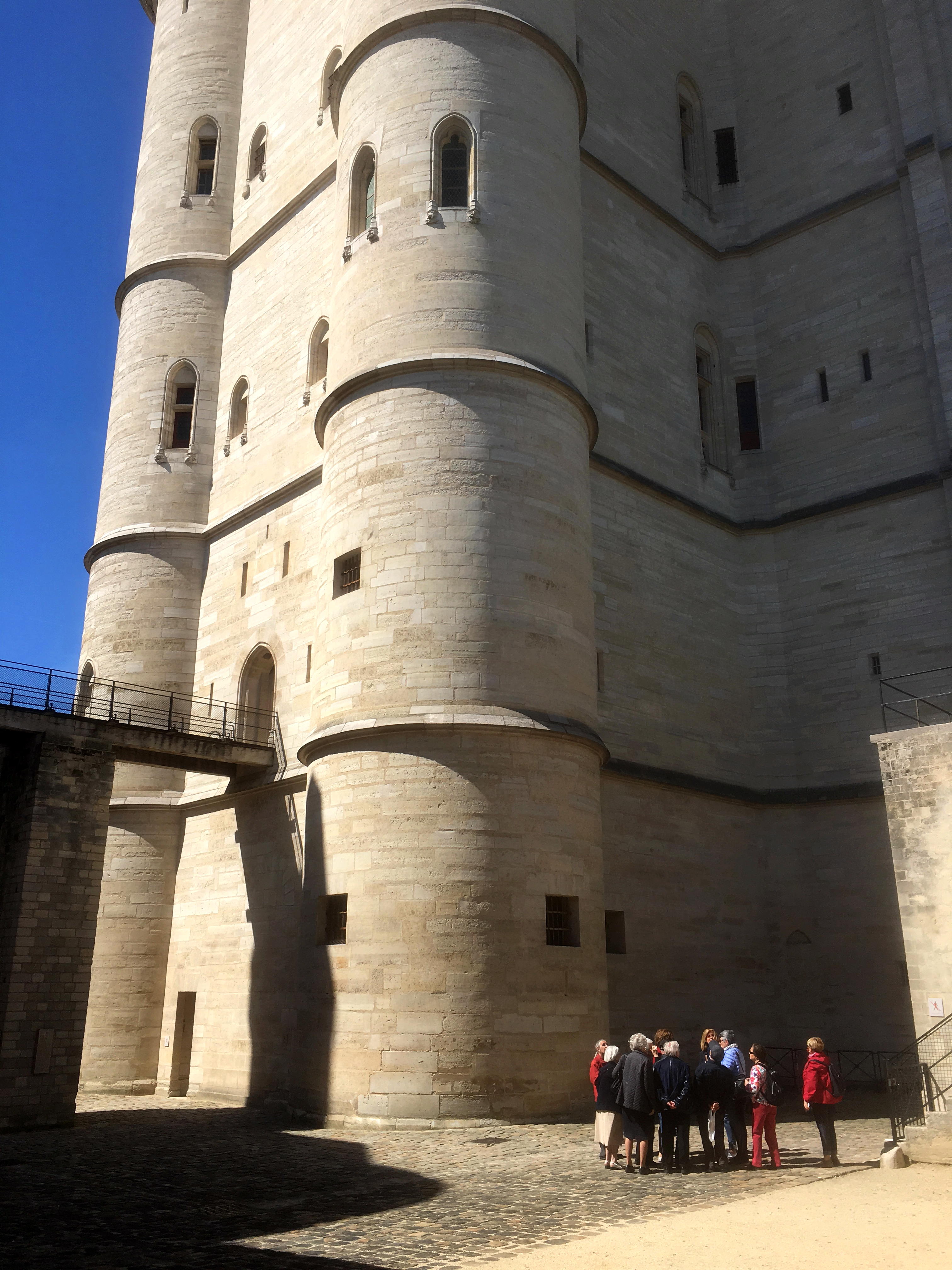 Le donjon, 52 m de hauteur, que nous visitons avec toujours les commentaires de notre guide, excellente. Les différentes salles de ce donjon de l’époque de Charles V qui fut un roi lettré, qui possédait une importante bibliothèque. C’est lui qui décida des travaux de la forteresse de Vincennes. Le roi craignait les soulèvements nombreux à Paris, par ex : celui mené par Etienne Marcel prévôt des marchands. |